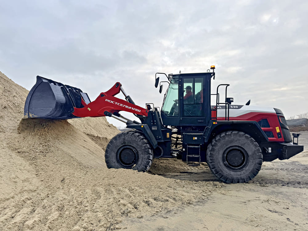 Фронтальный погрузчик WL 530 оснащен шестицилиндровым дизельным двигателем мощностью 160 кВт (218 л. с.) и гидромеханической КПП с возможностью переключения передач во время движения (4 вперед и 3 назад). Его грузоподъемность составляет 5 тонн, высота выгрузки по оси шарнира ковша - 4,1 метра, а рабочий цикл всего 10 секунд. Машина подходит для выполнения погрузочно-разгрузочных работ, уборки строительных площадок, транспортировки грузов и т.д.